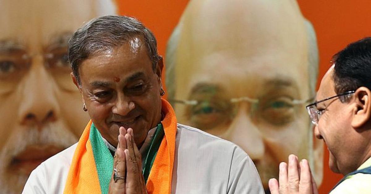 IMAGE: Former Congress leader Sanjay Sinh arrives for a press conference at the BJP headquarters in New Delhi on July 30, 2019. Photograph: ANI Photo