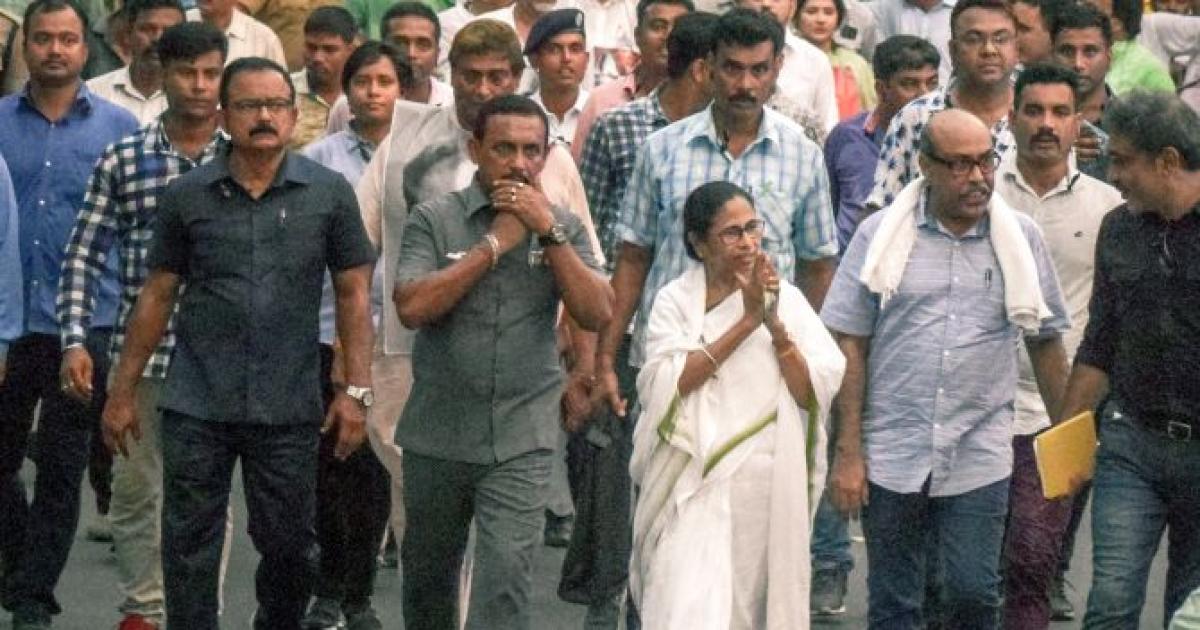 West Bengal Chief Minister Mamata Banerjee during her 7 km march to protest against poll violence in the state, May 15, 2019. Photograph: ANI Photo