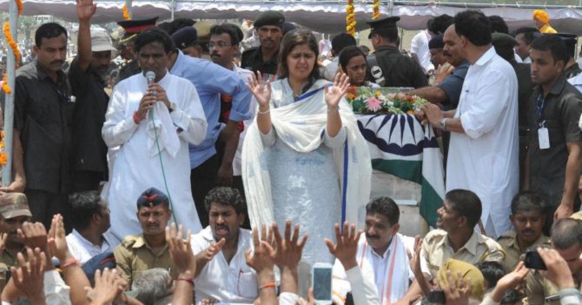 Image: Pankaja Munde at her father's funeral in Parli on Wednesday. Photo: PTI