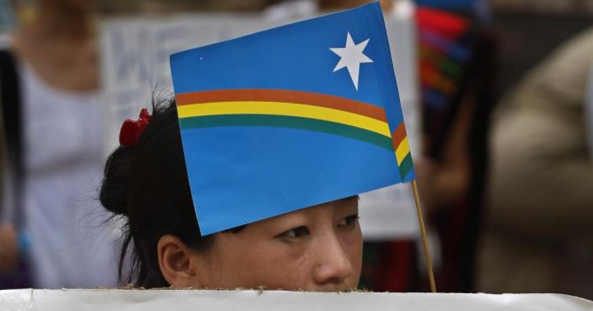 Image: A member of the Naga Students Union Delhi during a protest in New Delhi. Photograph: Adnan Abidi/Reuters