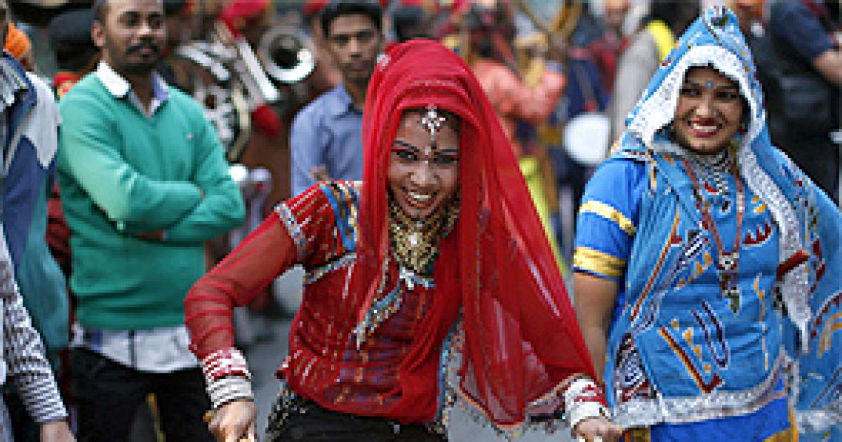 Image: A performer outside the Bharatiya Janata Party's national headquarters in New Delhi celebrates the BJP's win in the December assembly elections. Photograph: Ahmad Masood/ Reuters