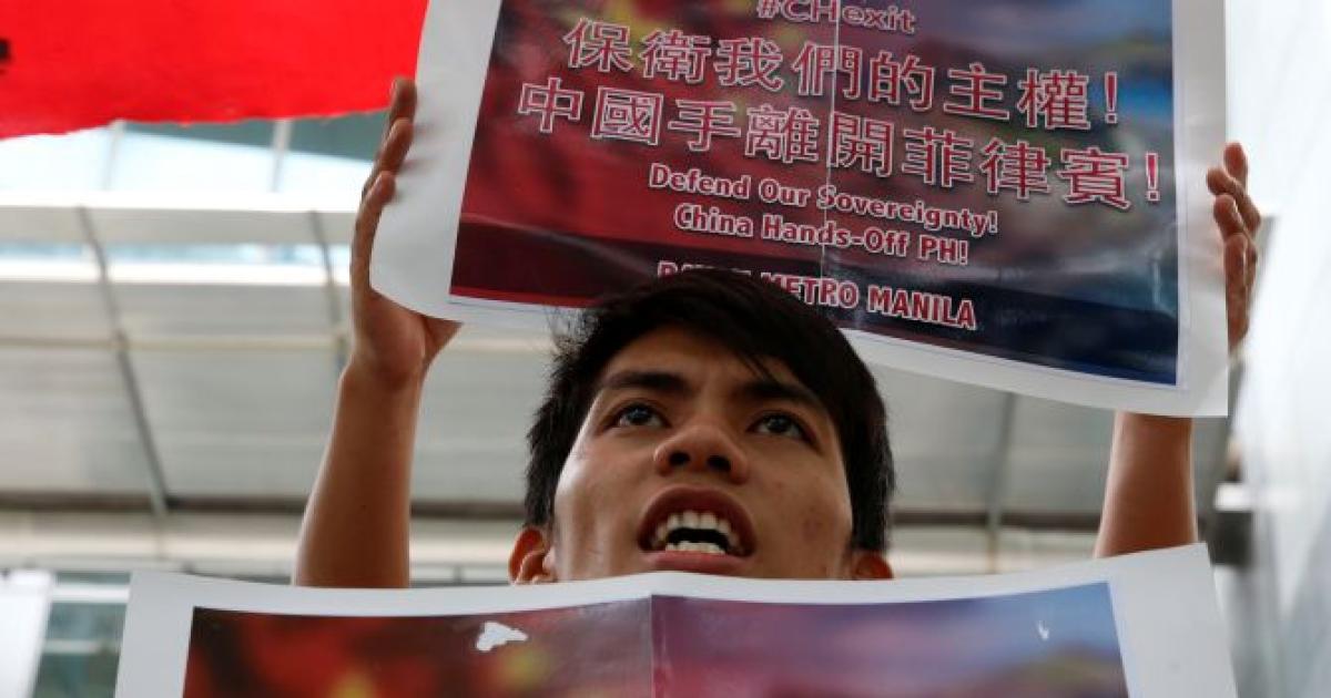 IMAGE: Demonstrators at a protest over the South China Sea dispute outside the Chinese consulate in Makati City, Metro Manila, The Philippines. Photograph: Erik De Castro/Reuters