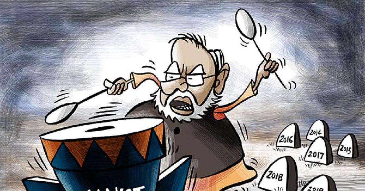Gone is the development-for-all promise of 'Sabka saath, sabka vikas' underpinned by a plea to voters of 'Ab ki baar, Modi sarkar' that swept the Bharatiya Janata Party to power in 2014 with an unprecedented mandate.