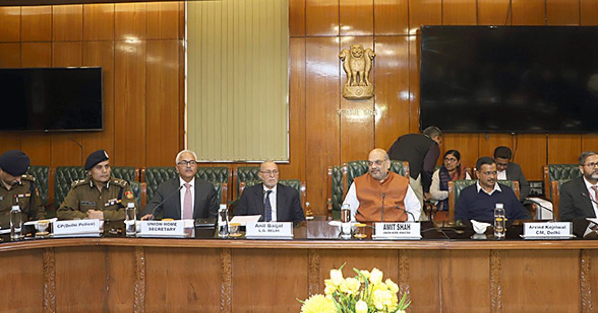 Notice how Shah's chair is higher than the chairs of the others at the meeting! Photograph: Press Information Bureau