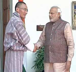 Prime Minister of Bhutan Tshering Tobgay meets PM Narendra Modi at Hyderabad House today.
