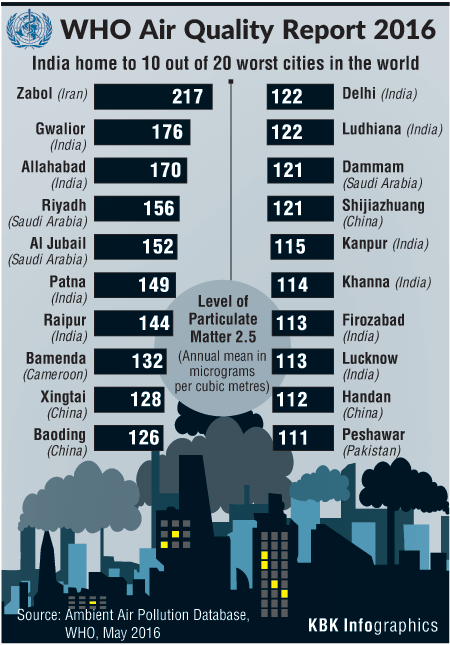 New Delhi is no longer the world's most polluted city, but India continues to afflicted by air pollution, being home to 10 out of 20  cities with the worst air pollution levels, according to new data from the World Health Organisation.