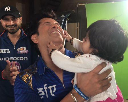 A break from Tamil Nadu politics for this tweet from Sachin Tendulkar: @sachin_rt With little Hinaya Heer! Shes a bundle of joy @harbhajan_singh..Thats Harbhajan Singhs daughter (the doting dad clearly cant stop grinning).