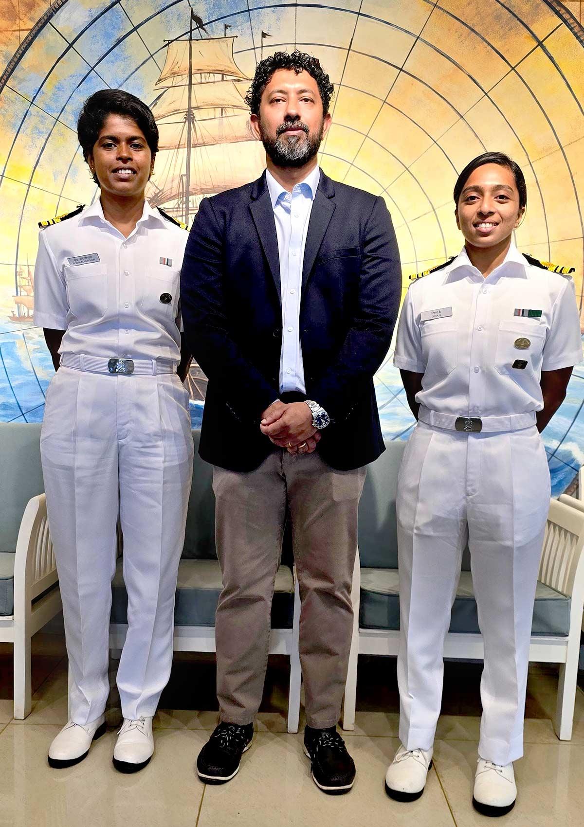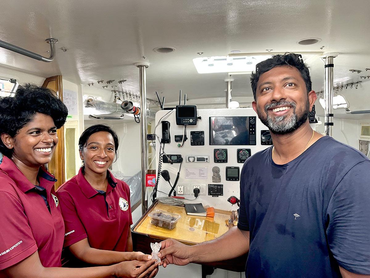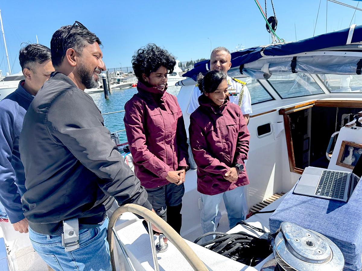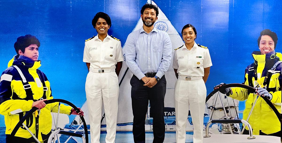 Commander Tomy trained Lieutenant Commanders Dilna and Roopa in theories of sailing, weather, navigation, GMDSS, emergencies, boat systems etc in a classroom before moving on to sailing sorties.