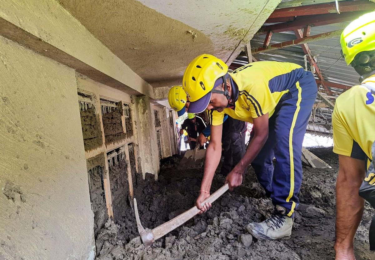 Can any bund survive the force of these raging waters and mud slips? Why was construction permitted in the river catchment area?