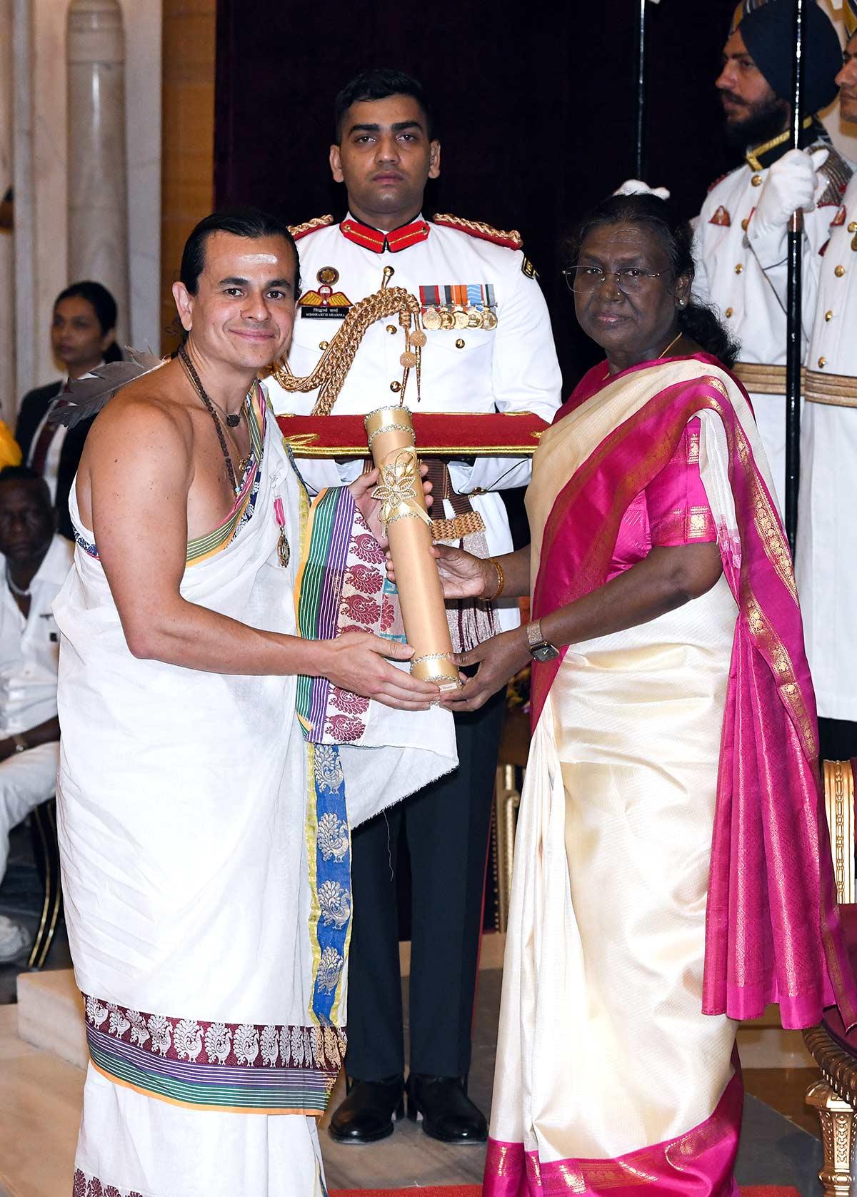 Last week, Acharya Masetti travelled to India and received the Padma Shri at Rashtrapati Bhavan, dressed in a dhoti, rudrakash and barefooted.