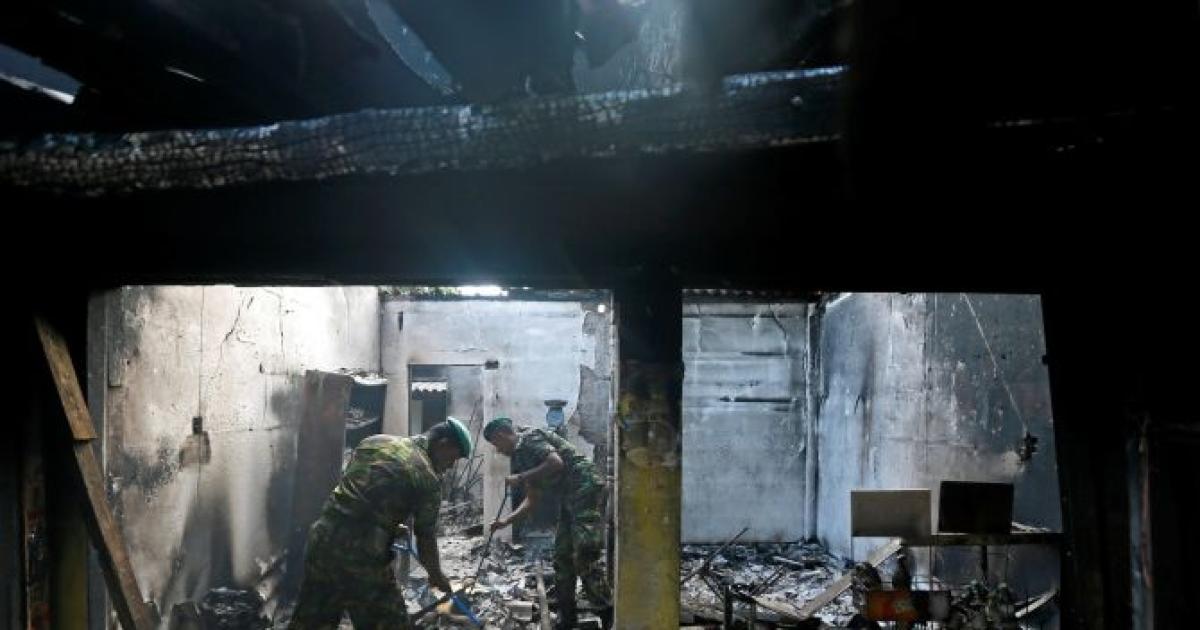 "A soldier has been killed and the military has entered the premises," military spokesman Brigadier Jayanath Jayaweera said, adding that soldiers have doused the fire.
