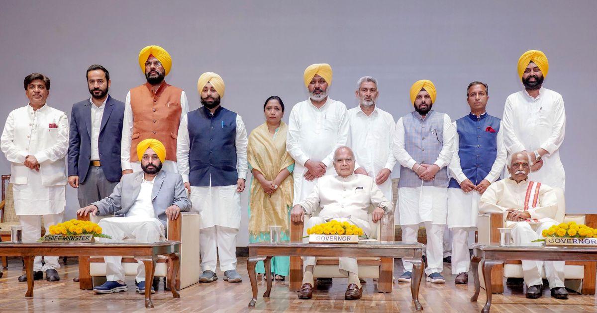 Haryana Governor Bandaru Dattatreya, Punjab Chief Minister Bhagwant Mann, Protem Speaker Dr Inderbir Singh Nijjar, AAP MLAs and family members of those who were inducted as ministers were among those present at the event.