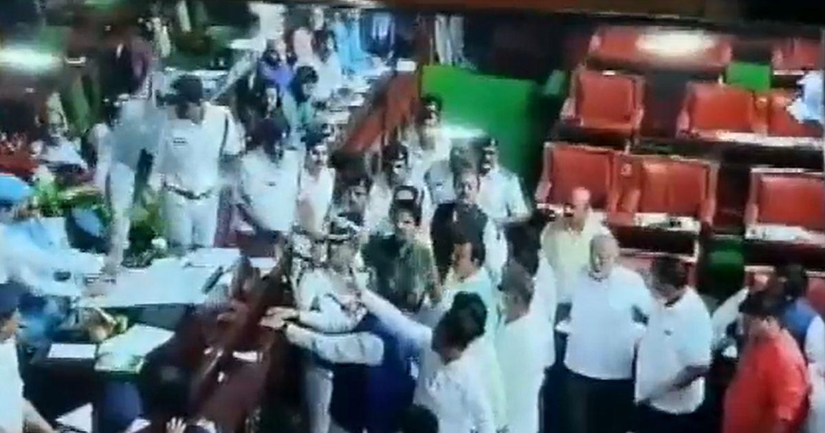 The Congress MLAs too strongly objected to the "unruly" behaviour of the BJP MLAs, resulting in chaos. The deputy speaker then adjourned the house for the later part of the day.