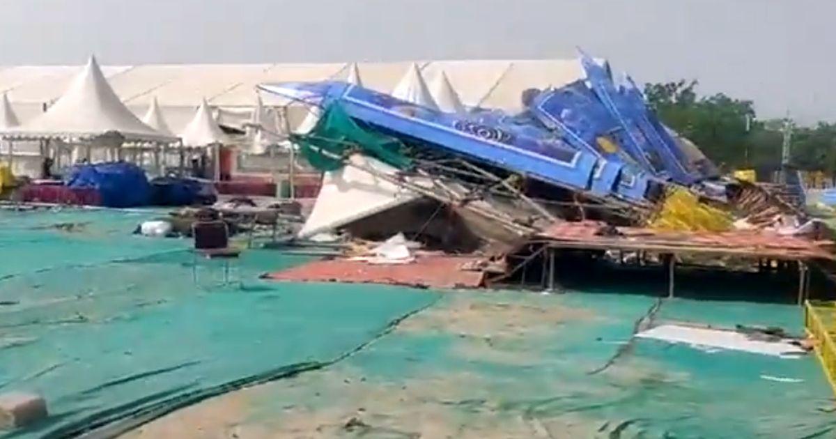 IMAGE: A pandal in Rohini's Japanese Park collapsed after gusty winds hit the National Capital Region. Photograph: ANI on X