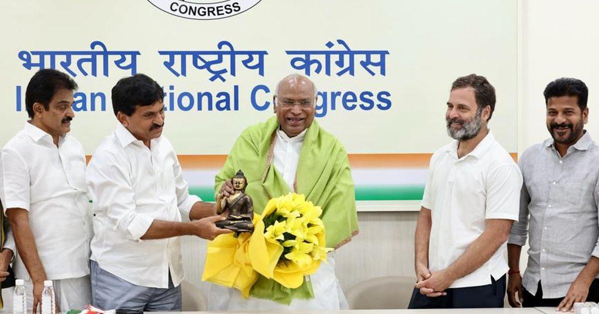 "Today, senior leaders from Telangana joined the Congress party in the presence of Congress President Mallikarjun Kharge, former Congress President Rahul Gandhi, General Secy (Org.) K C Venugopal, AICC Telangana Incharge Manikrao Thakre, Telangana PCC President Vevanth Reddy and other senior leaders at AICC HQ, New Delhi," the party said.