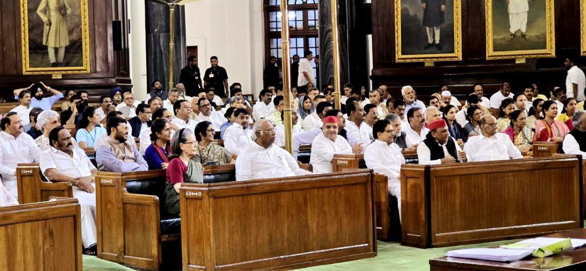 Among the leaders who attended the meeting in Samvidhan Sadan were Congress president Mallikarjun Kharge, Congress Parliamentary Party leader Sonia Gandhi, NCP-SP leader Sharad Pawar and DMK leader T R Baalu.