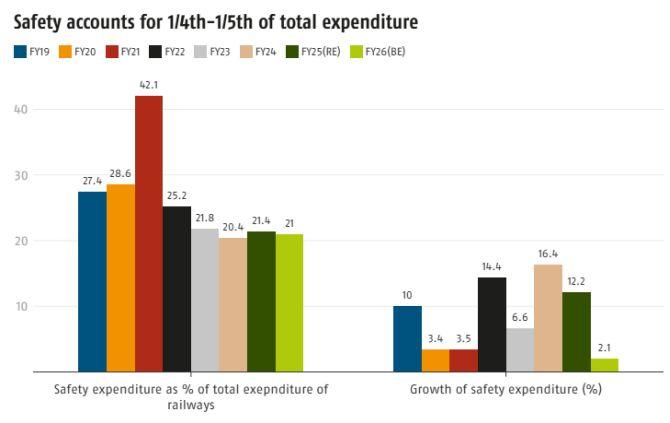 These incidents raise concerns about railway safety, especially as safety expenditure has remained between 20 per cent and 27 per cent of total railway spending over the past decade.