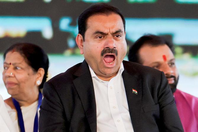 IMAGE: Businessman Gautam Adani yawns during the inauguration of the Navi Mumbai International Airport in Ulwe, Raigad district, October 8, 2025. Photograph: Francis Mascarenhas/Reuters