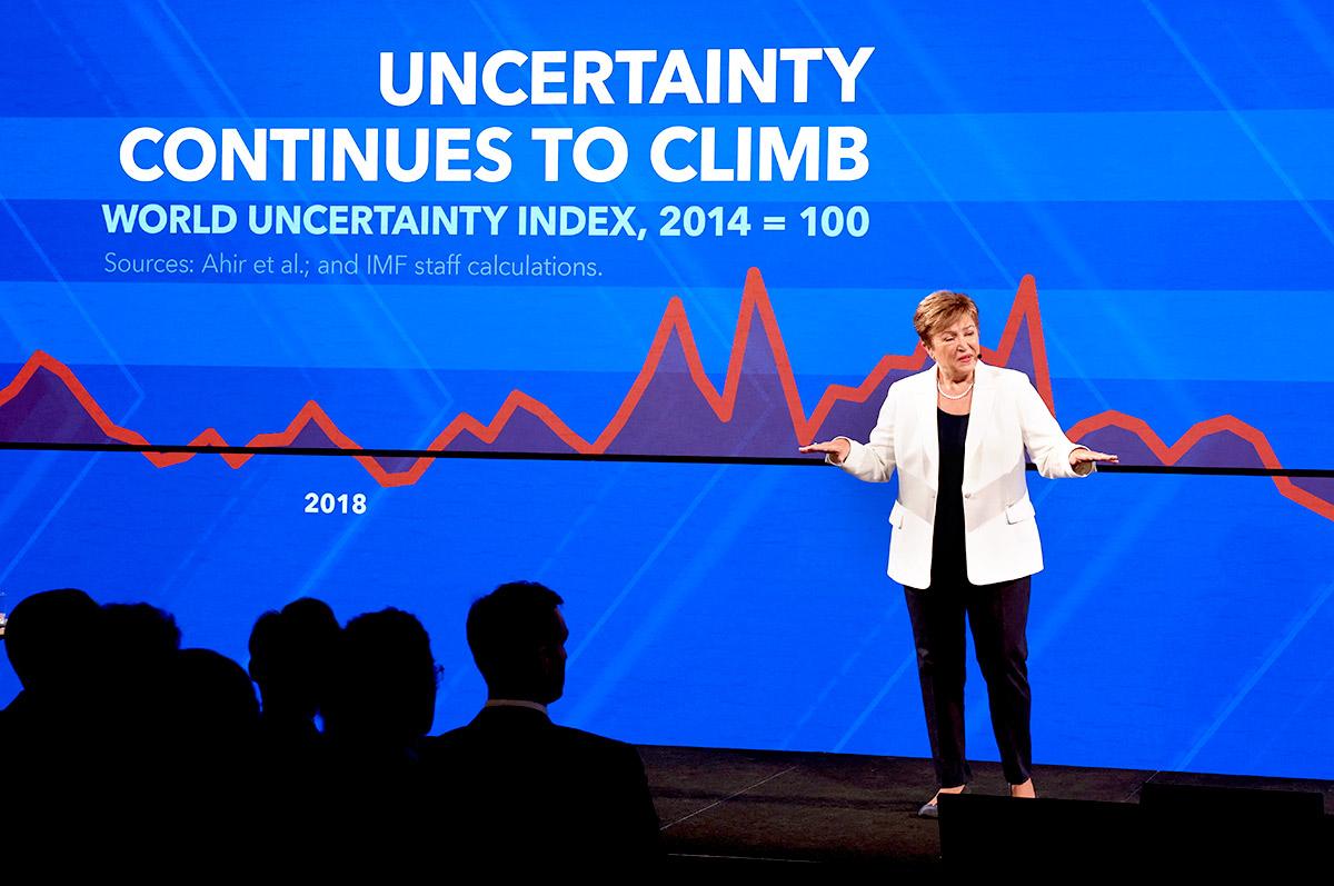 IMAGE: International Monetary Fund Managing Director Kristalina Georgieva delivers remarks ahead of the annual IMF-World Bank fall meetings at the Milken Institute in Washington, DC, October 8, 2025. Photograph: Jonathan Ernst/Reuters
