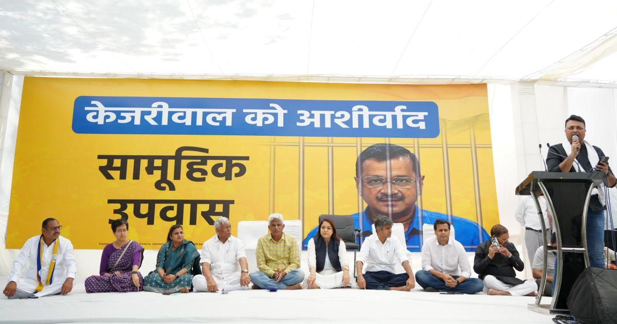 Top Aam Aadmi Party leaders held a daylong fast at Jantar Mantar in New Delhi on Sunday to protest against Delhi Chief Minister Arvind Kejriwal's arrest by the ED and asserted that people will give a fitting reply to the BJP in the upcoming Lok Sabha polls for sending him to jail.