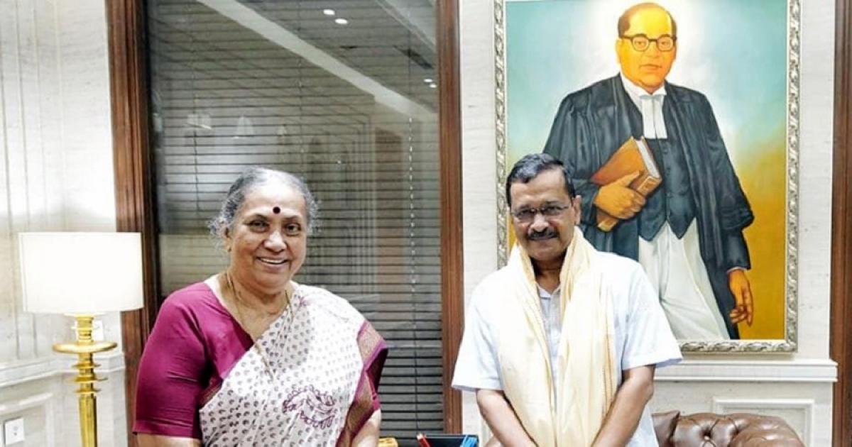 IMAGE: Opposition's Vice-Presidential candidate Margaret Alva meets Delhi Chief Minister Arvind Kejriwal, in New Delhi, July 23, 2022. Photograph: ANI Photo