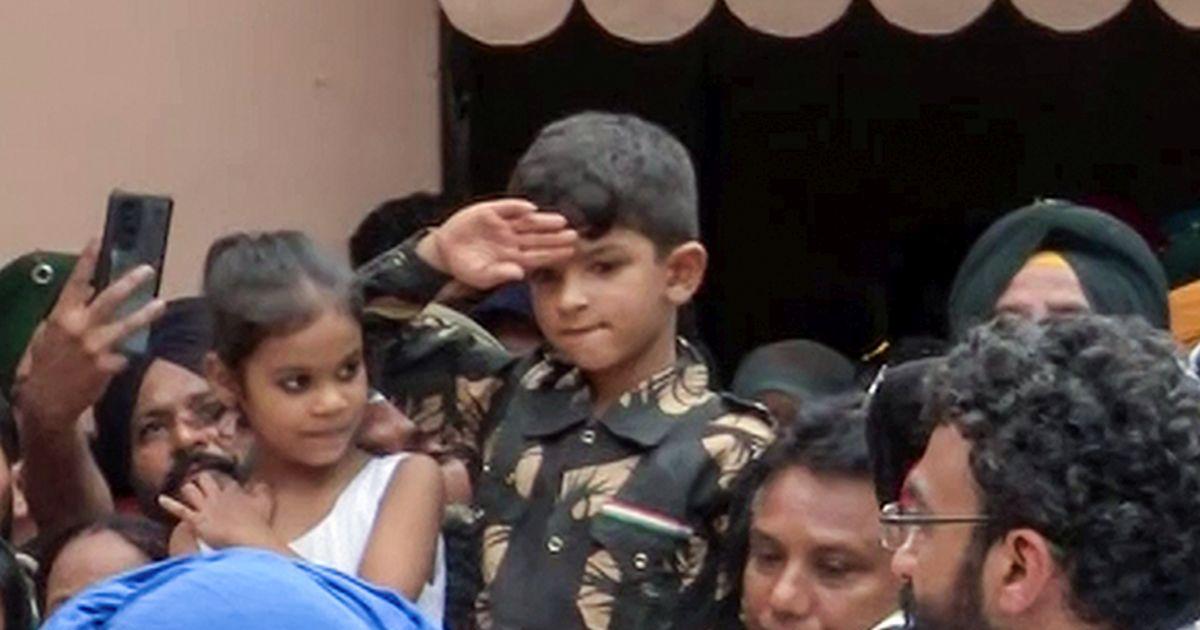 On Thursday, he watched as his mother received the Kirti Chakra from President Droupadi Murmu for his father who died fighting terrorists in Kashmir.