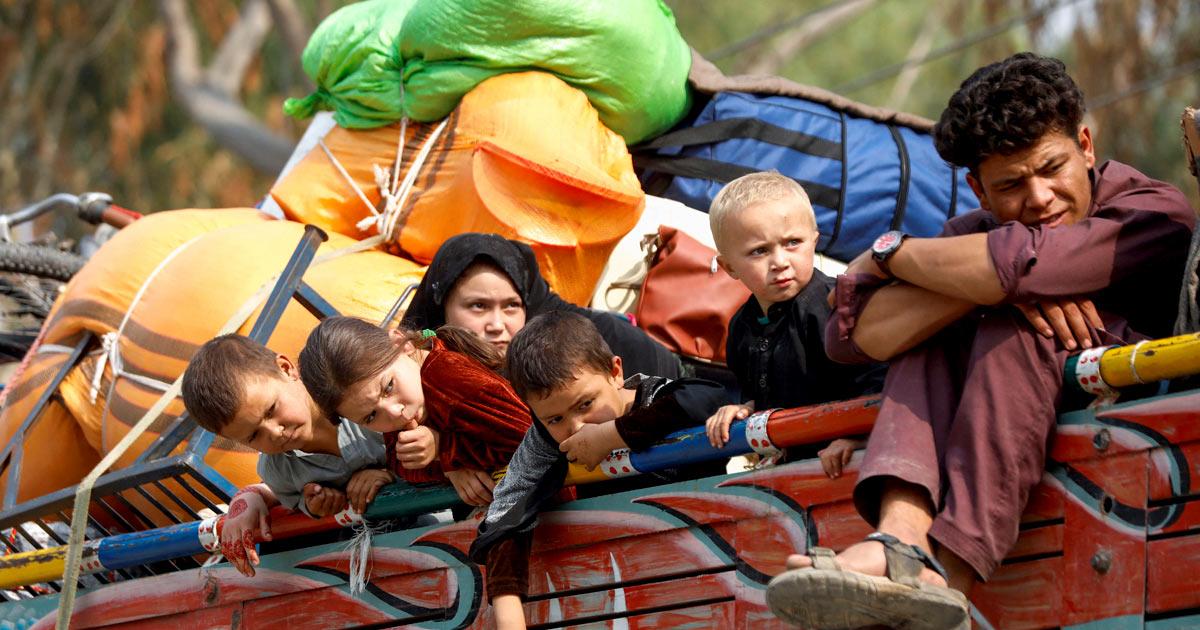 IMAGE: Afghan refugee children sit on a truck loaded with belongings as they along with their families prepare to return home, outside the United Nations High Commissioner for Refugees repatriation centre in Azakhel in Nowshera, Pakistan. Photograph: Fayaz Aziz/Reuters