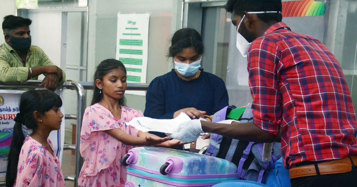 IMAGE: Passengers undergo monkeypox screening at the Chennai International Airport. Photograph: ANI Photo