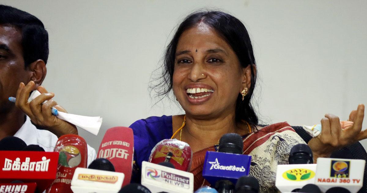 IMAGE: Nalini talks to the media soon after her release, November 12, 2022.