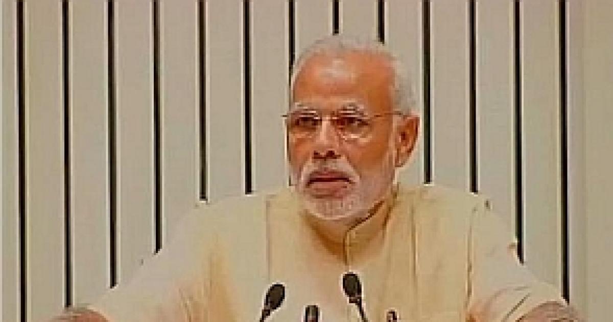 Image: Prime Minister Narendra Modi delivers a speech at the launch of 'Saansad Adarsh Gram Yojana' on Saturday