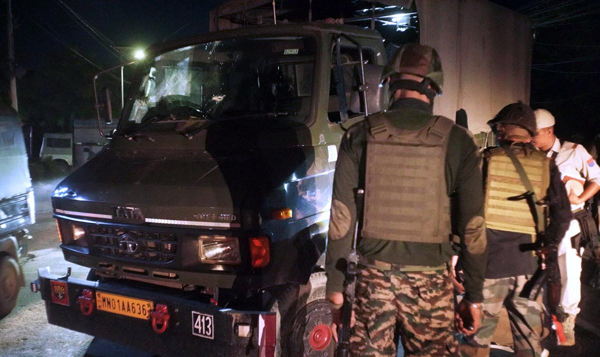Armed gunmen fired at an Assam Rifles vehicle in the Nambol Sabal area of Bishnupur in Imphal on Friday, September 19, 2025.