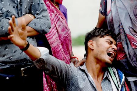 IMAGE: Kalpeshbhai Patni, 28, mourns as he sits outside the postmortem room at a hospital in Ahmedabad for his brother Akash Patni, 14, who died. Photograph: Adnan Abidi/Reuters