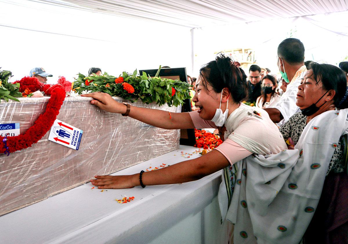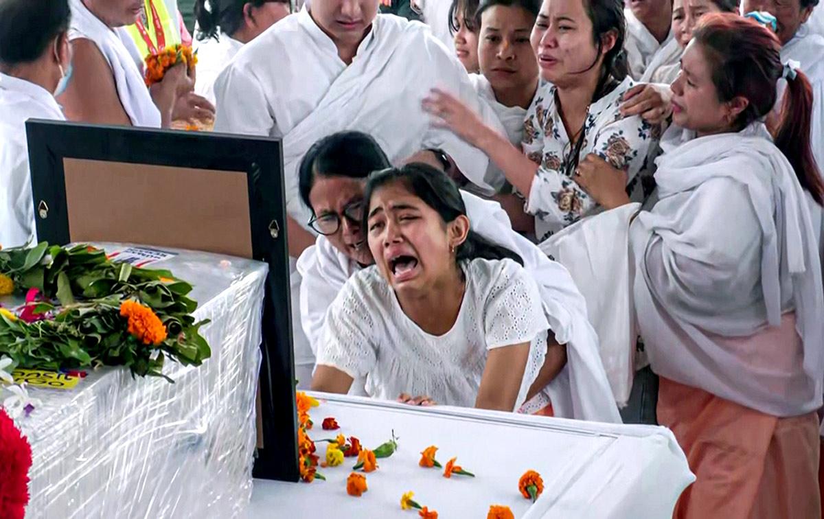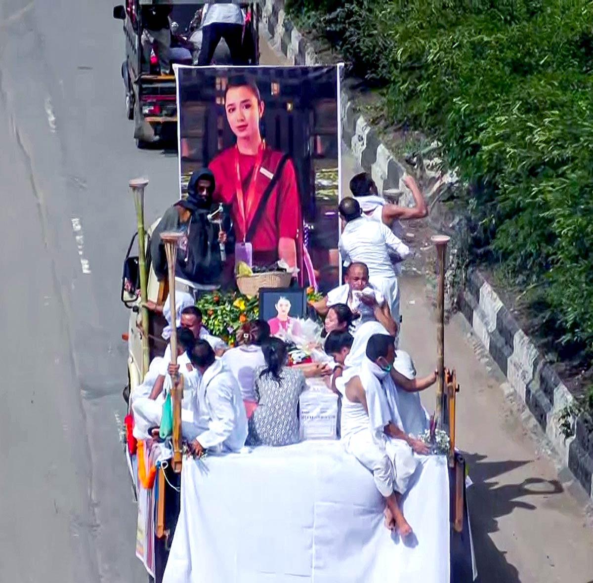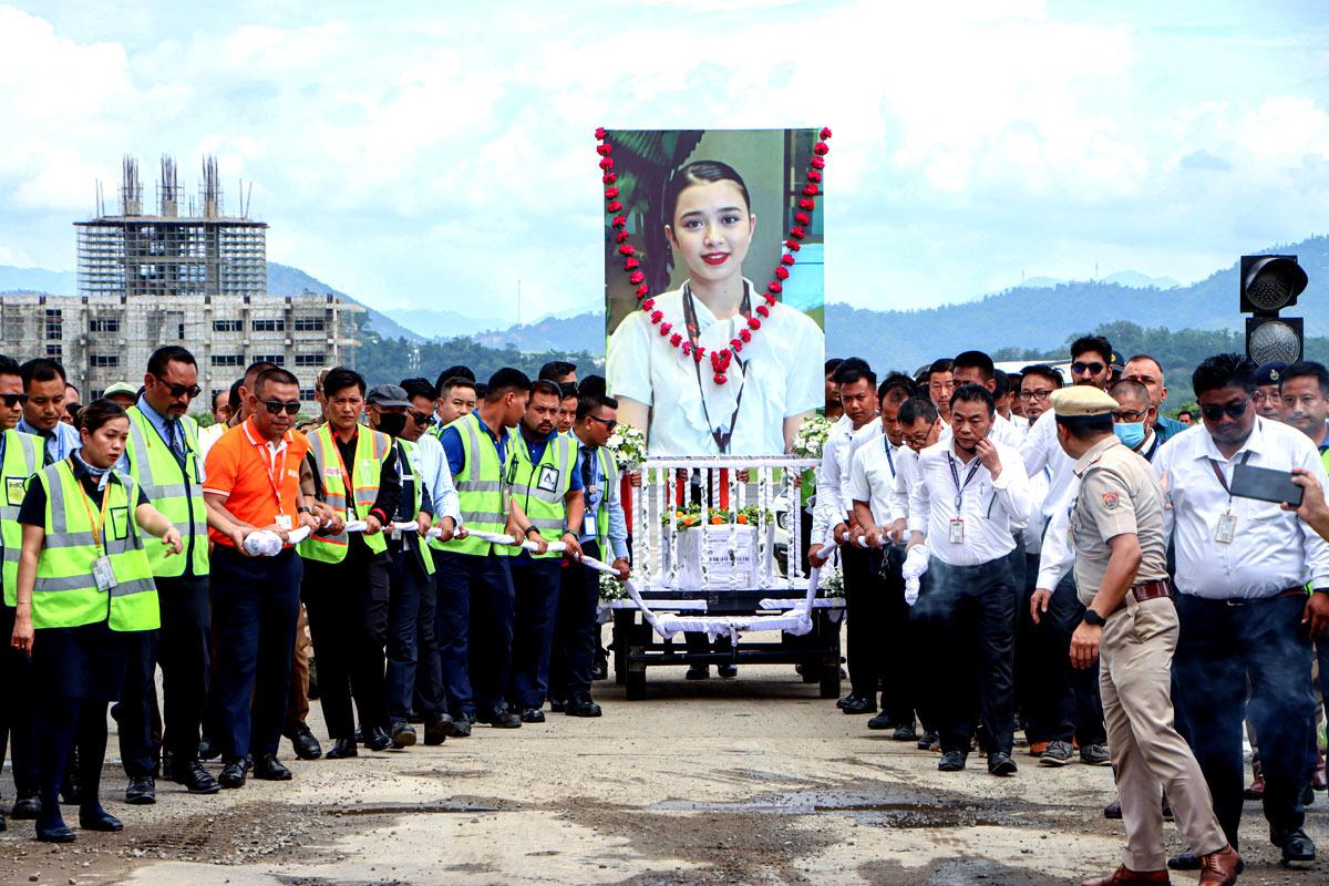 As her coffin was taken to her native Thoubal district for final rites, thousands lined the streets in mourning, offering floral tributes to the young woman who served as cabin crew.