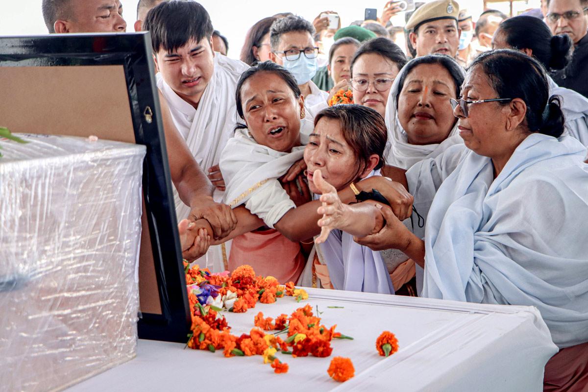 A solemn reception ceremony was held at Imphal airport, attended by top state officials and political leaders.