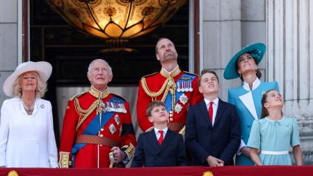 IMAGE: Britain's King Charles insisted that the Trooping the Colour parade in London, June 14, 2025, mourn the victims of the Air India crash.