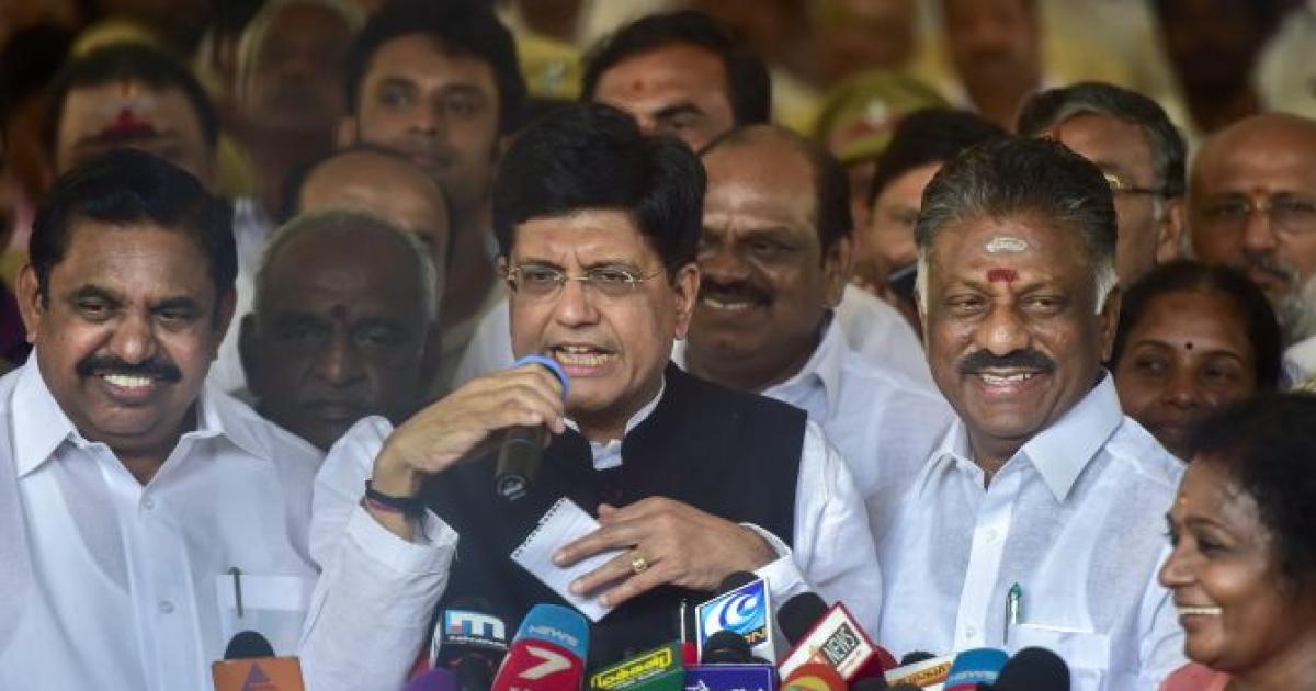 Goyal said: "I am extremely delighted that today the AIADMK and the BJP have concluded very fruitful discussions and we have agreed to contest the Parliament elections both in Tamil Nadu and Puducherry and the bypolls to 21 assembly seats together in alliance."