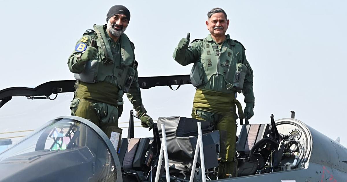 Air Chief Marshal Amar Preet Singh and General Upendra Dwivedi marked the beginning of Aero India-2025 by flying the Light Combat Aircraft Tejas at the Yelahanka Air Force Station in Bengaluru.