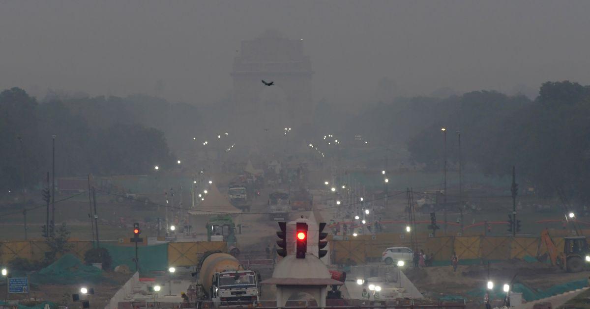IMAGE: India Gate barely visible as dense smog engulfs Delhi due to air pollution. Photograph: ANI Photo