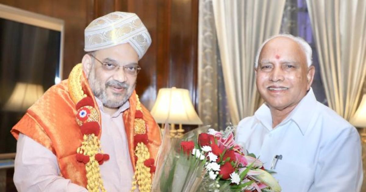 IMAGE: Union home minister Amit Shah with Karnataka chief minister B S Yediyurappa. Photograph: @HMOIndia/Twitter