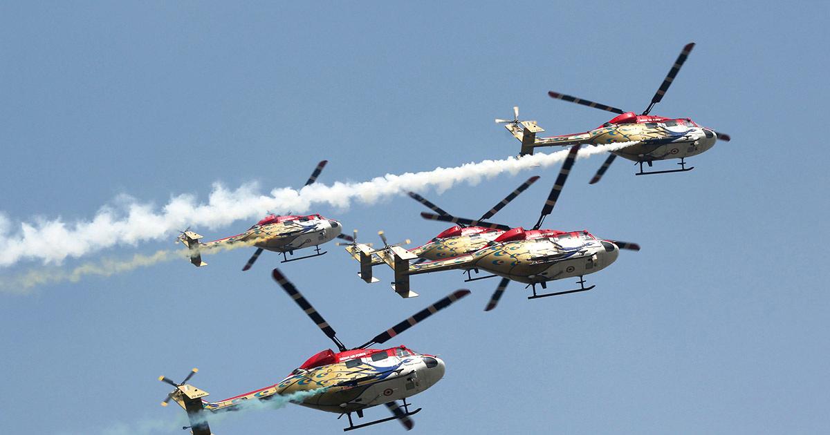 IMAGE: Indian Air Force helicopters, who will be part of the parade. Photograph: Press Information Bureau