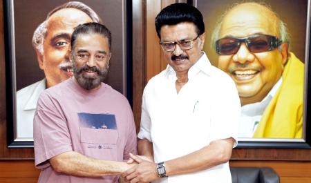 Top actor Kamal Haasan on Wednesday shared the stage in Chennai with Thug Life stars including Silambarasan, but did not make any comment on the row related to his remark on the Kannada language.