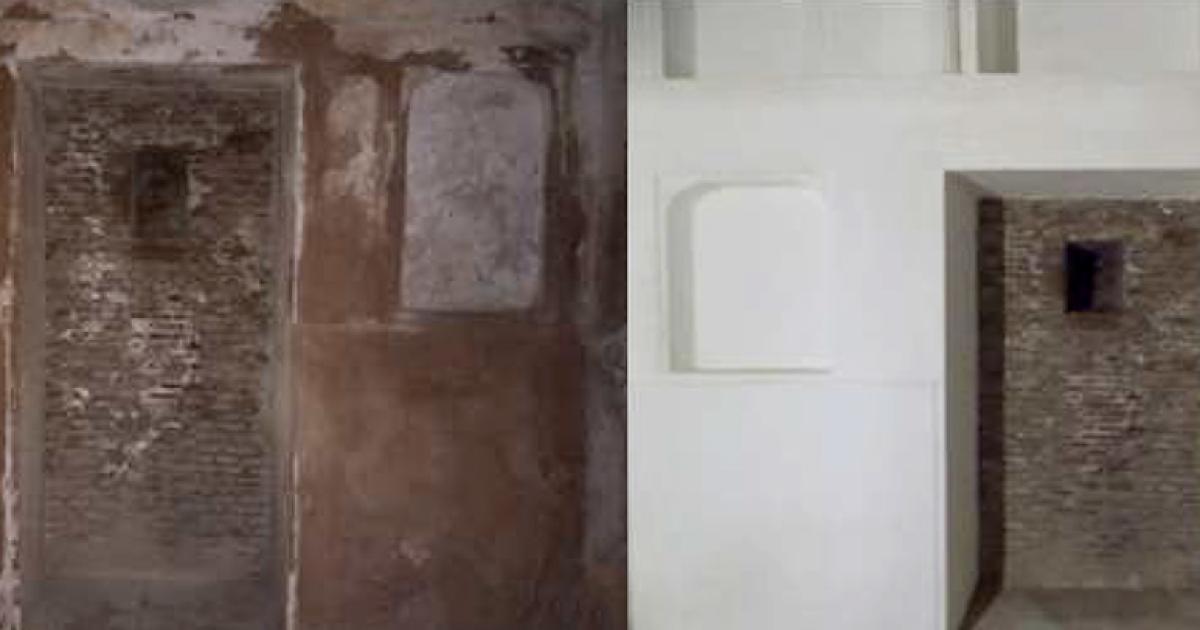 The images show two spots inside the underground rooms of the Taj Mahal where maintenance work was carried out recently.