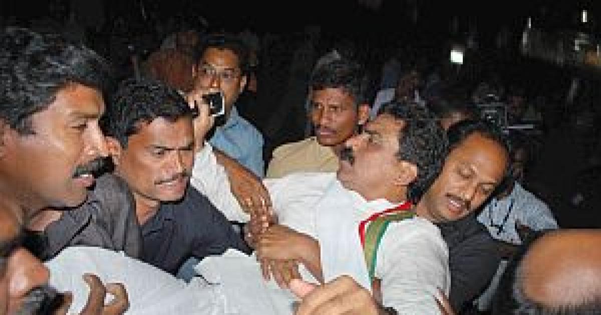 When asked by the reporters whether the stadium could also be the venue for his proposed fast unto death, he answered in affirmative. Meanwhile, the police swooped down on the stadium and removed all the people from there. When Rajagopal tried to stop the police, he was arrested.