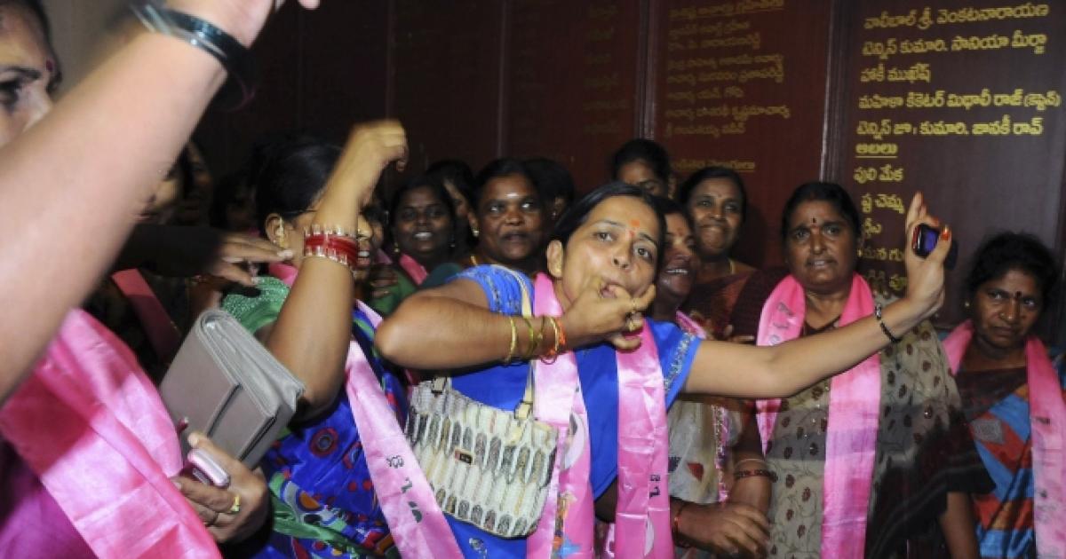 Image: Telangana supporters cheer as they celebrate after the announcement of the separate state of Telangana at their party headquarters in Hyderabad on July 30, 2013. Photograph: Reuters