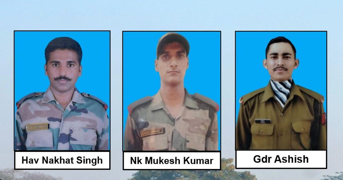 The deceased were identified as Havildar Nakhat Singh, Naik Mukesh Kumar and Grenadier Ashish Kumar, according to Army sources.