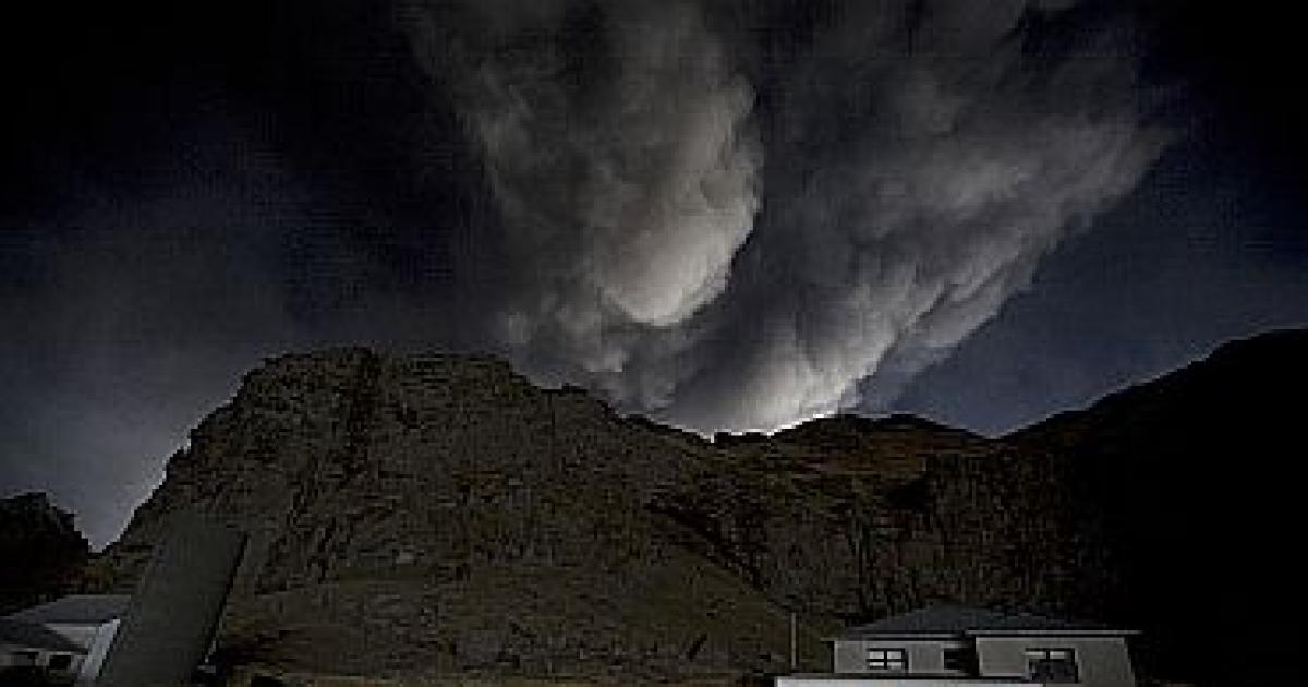 Image: A cloud of black ash looms over a farm at Drangshlid 2 in Eyjafjoll, Iceland, on Sunday