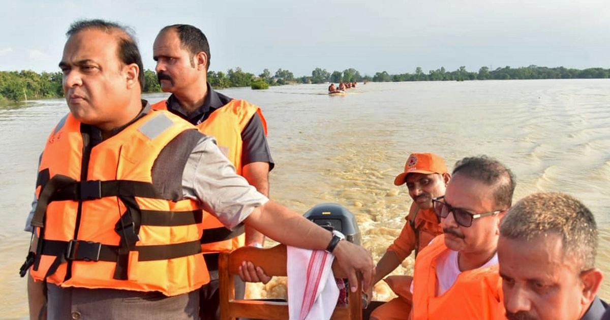 Chief Minister Himanta Biswa Sarma also travelled to Nagaon, by train, to review the situation. He toured the different flood-hit areas in a boat and interacted with the people who have taken shelter at the relief camps in Kampur College and Raha Higher Secondary School.