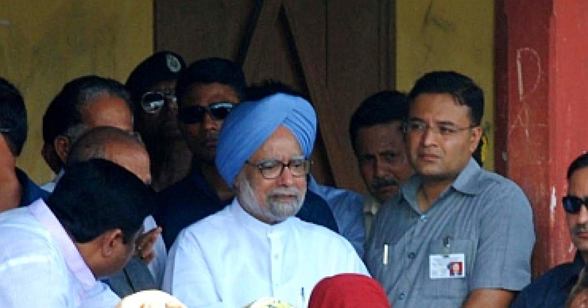 Pic: Prime Minister Dr Manmohan Singh at a relief camp in Assam