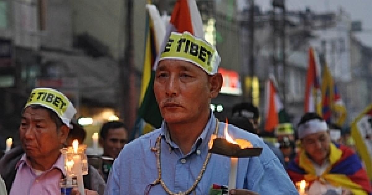 In pic: Members of the Tibetan Solidarity Committee (northrast India) take out a candle rally in Guwahati
