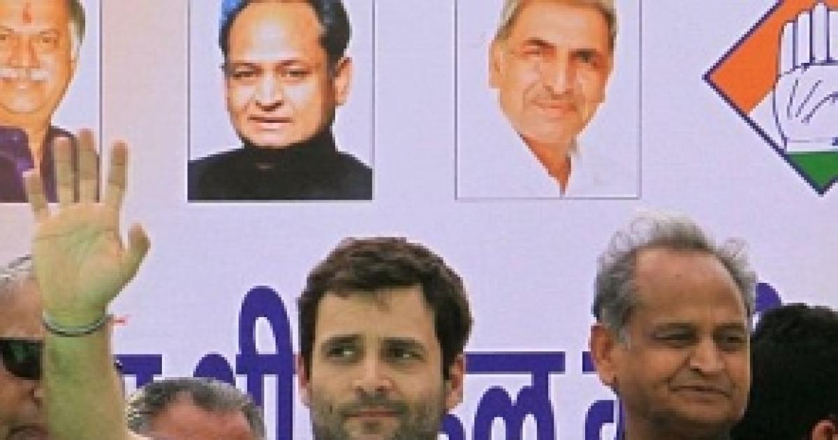 Image: Ashok Gehlot with Rahul Gandhi at a poll rally in Rajasthan ' Photograph: Chandra Mohan Aloria